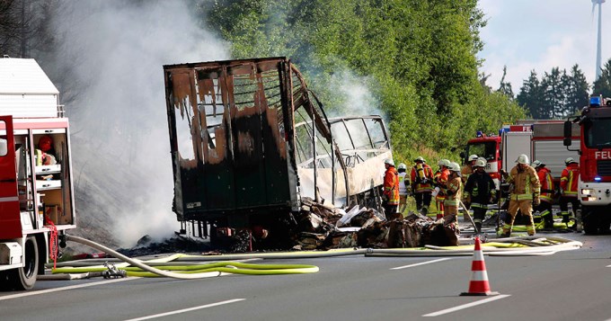 El trágico hecho ocurrió en Alemania. El vehículo, que trasladaba a 46 turistas, impactó desde atrás contra un camión y se incendió. <em>"El calor era tal (...) que solamente la estructura de acero es reconocible"</em>, describió el? ministro de Transporte, <strong>Alexander Dobrindt</strong>.