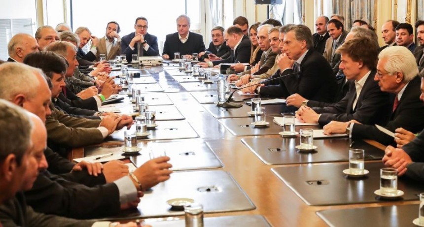 El presidente Mauricio Macri encabezó un encuentro en la Casa Rosada con referentes de ambos sectores y después hizo el anuncio. Fueron invitados decenas de empresarios y Caló y Barrionuevos de las dos CGT, entre otros gremialistas