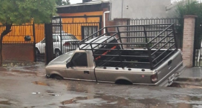 Un ocasional transeúnte envió a nuestra redacción, como quedo esta camioneta tras las intensas lluvias que comenzaron en gran parte de la provincia desde esta madrugada