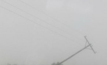 Operarios de EC SAPEM trabajan para reparar los daños que causó el fuerte viento zonda en el interior provincial. Se informó que en Tinogasta ya hay energía, mientras que en otros distritos trabajan para restablecer el servicio.