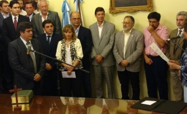 La Gobernadora Lucía Corpacci le tomó juramento a los ministros que completan su gabinete, en un acto desarrollado en el Salón de Acuerdos Fray Mamerto Esquiú de Casa de Gobierno.