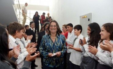 La Gobernadora Lucía Corpacci inauguró esta mañana la obra de ampliación y las nuevas instalaciones de la Escuela Secundaria N° 50 “Apolo”. El edificio escolar cuenta ahora con toda una flamante ala para la enseñanza, que incluye seis nuevas aulas, áreas de servicio y baños, fruto del intenso trabajo que se llevó adelante en la escuela, una de las más concurridas en el sureste de la Capital, con una matrícula superior a los 800 alumnos que asisten al mencionado nivel.