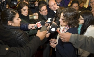 La gobernadora Lucia Corpacci, acompañada por el ministro de Gobierno, Gustavo Saadi; recibió a los trabajadores de todos los medios de comunicación y les deseó una feliz jornada, para luego ofrecer una extensa rueda de prensa en la que abordó diversos temas de actualidad.