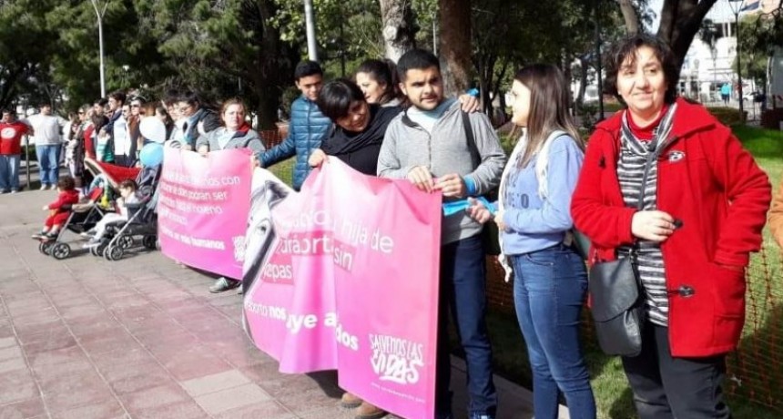 Con banderas argentinas, pañuelos celestes y carteles con mensajes pidiendo por las dos vidas, adultos, jóvenes y niños realizaron gestos concretos como un abrazo con el que estaba al lado, aplausos y cantos, expresando de esta manera su adhesión al cuidado de la vida desde la concepción.