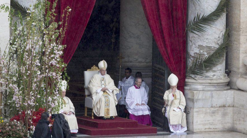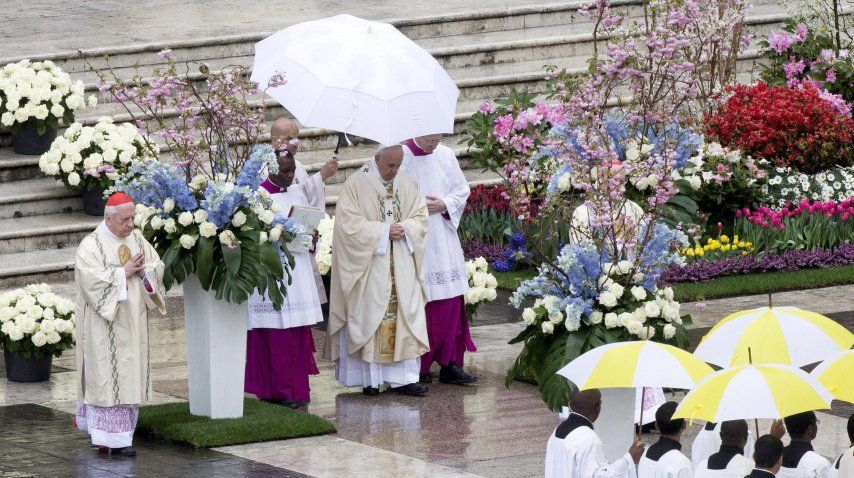 Tras oficiar la misa del Domingo de Resurrección bajo la incesante lluvia que caía hoy en Roma, Francisco se asomó al balcón de la basílica para un mensaje de Pascua en el que, de nuevo, enumeró, pidió la paz en todos los conflictos aún abiertos en el mundo e impartió la bendición "Urbi et Orbi" (a la ciudad y al mundo).