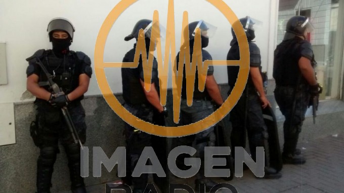Un grupo de trabajadores agremiados a ATE se manifiestan en la plaza principal por un reclamo a nivel nacional,policía de la provincia y gendarmeria custodian casa de gobierno y alrededores.