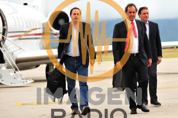 El gobernador de la provincia de Buenos Aires, Daniel Scioli, arribó esta tarde a Catamarca en un avión particular, acompañado por el vicegobernador de la Provincia, Dalmacio Mera.