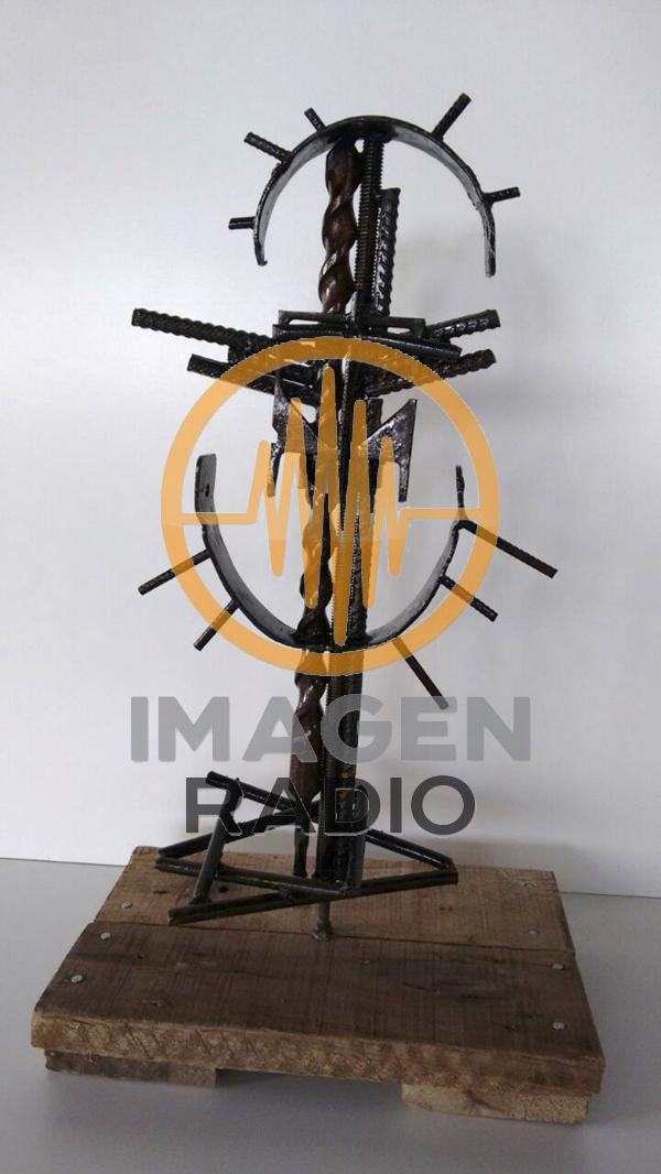Se trata de una pieza de un poco menos de un metro de alto y, como toda la obra del artista argentino de 46 años, está confeccionada con materiales de descarte ferroviario y metales, confirmaron a Télam de fuentes del gobierno argentino.