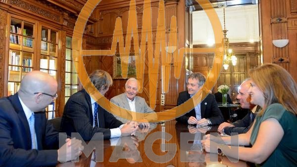 El secretario general de la Presidencia, Fernando De Andreis y Fernando Marín, a cargo del programa estatal Fútbol para Todos, fueron los anfitriones de los emisarios de las empresas.