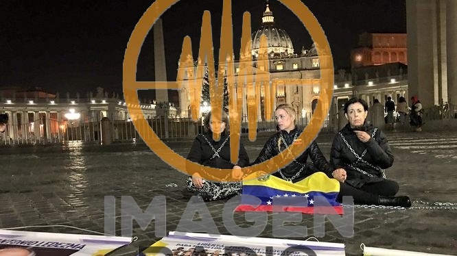 Se ha encadenado esta noche en el centro de la Plaza San Pedro del Vaticano para pedir la liberación de su esposo, Leopoldo López, y de todos los presos políticos venezolanos.