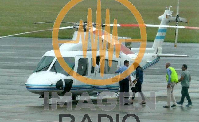 Se ve en la imagen a una camioneta de ese banco suizo estacionada al lado del helicóptero presidencial y a un hombre cargando bolsos a la aeronave.