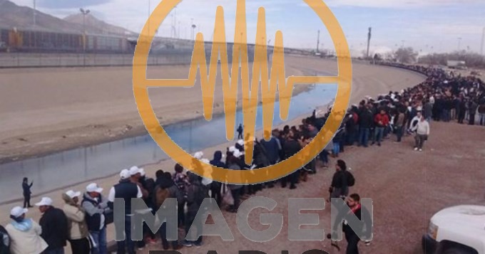 La gran fila de juarenses era visible desde los barrios de El Paso cercanos al muro que ya existe en ese punto de la frontera.