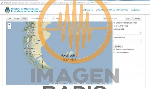 El Ministerio de Modernización de la Nación publicó en datos.gob.ar -una página web que dicho organismo administra- un mapa de Argentina en el que las Islas Malvinas aparecían con la denominación británica, Falkland Islands.