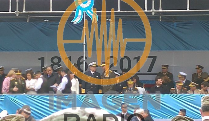 Fue justo en el lugar en el que los jefes de las fuerzas militares y los funcionarios nacionales debían sentarse. Sin embargo, la polémica se trasladó a las redes sociales porque si bien en un momento del acto esa era la cifra, otras imágenes registraban la misma bandera pero con la leyenda correcta “1810-2017”.