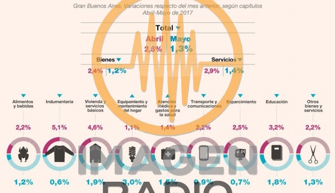 La inflación de mayo estuvo impulsada por una suba del 1,2% en Alimentos y Bebidas, del 1,9% en Vivienda y servicios básicos, del 1,5% en Atención Médica y gastos para la salud, y 1,8% en Educación, entre otros.