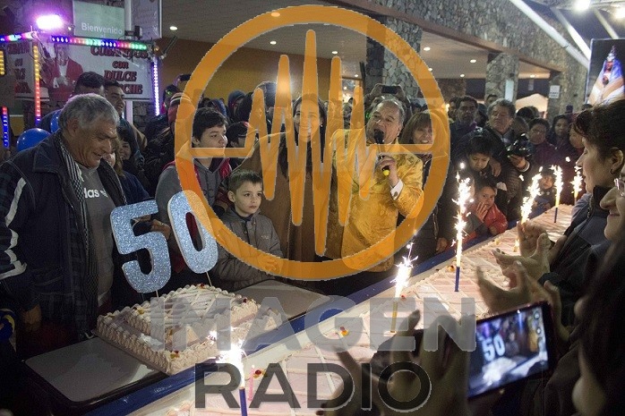 La torta, con bengalas y muchas velitas, se convirtió en la estrella de la tarde del domingo en el Poncho. Miles de personas se fotografiaron con ella y otros tantos se quedaron, con paciencia, a esperar su porción.