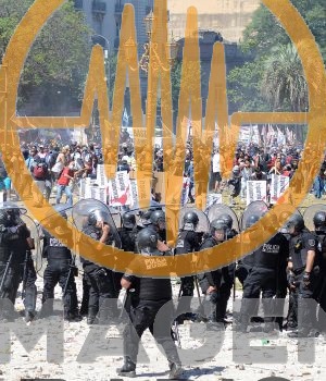 A poco de comenzar el debate de la reforma previsional� en el Palacio Legislativo comenzaron los disturbios entre un numeroso grupo de violentos y la Policía de la Ciudad en la Plaza de los dos Congresos. Tras la batalla entre los manifestantes que lanzaban piedras y las fuerzas de seguridad, que resistía con carros hidrantes, balas de goma y gases lacrimógenos, los enfrentamientos continuaron en la avenida 9 de Julio y avenida de Mayo.