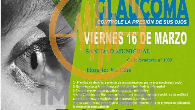 A partir de las 8 a las 12 horas, en Sanidad Municipal, ubicada en peatonal Rivadavia 1039, se realizarán exámenes a cargo de los especialistas en oftalmología.