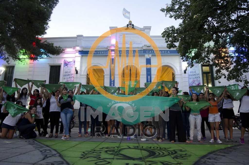 El colectivo de Mujeres Organizadas, realizó una intervención a la que denominaron “pañuelazo” frente a la Facultad de Humanidades, en el marco del inicio del debate por la legalización del aborto en el Congreso de la Nación.