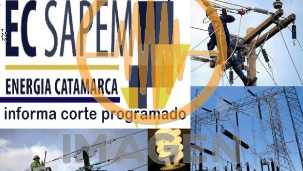 La empresa Energía de Catamarca SAPEM informa el programa de suspensión de servicio eléctrico a realizarse el domingo 6 de mayo, entre las 7 y 13 horas, en varios departamentos del Oeste provincial.