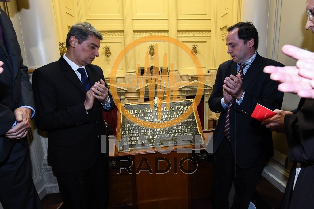 Se realizó por iniciativa del senador Dalmacio Mera, la ceremonia de descubrimiento de la placa en homenaje a Fray Mamerto Esquiú en el centro de la primera galería del recinto del Senado de la Nación.