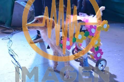 Mejor Producción: Brisa (perrito rescatado de la calle que no puede caminar y le hicieron ese triciclo para que pueda desplazarse)