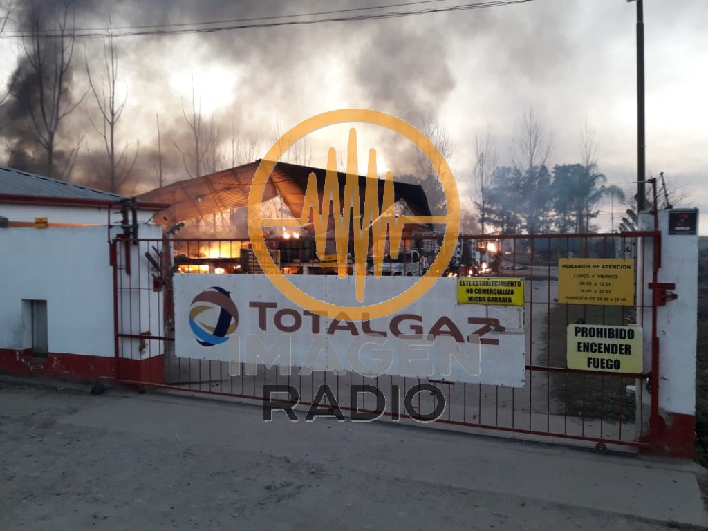 El impresionante incendio se produjo en un local de la empresa Total Gaz ubicado sobre la ruta 38 en el acceso sur de Concepción, frente al campamento de Vialidad Nacional.