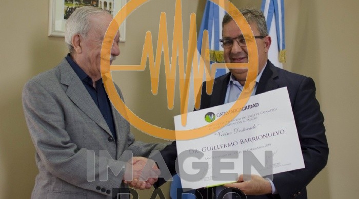 El intendente de SFVC, Raúl Jalil, otorgó ayer la distinción de 'Vecino Destacado” al médico Guillermo Barrionuevo, que el año pasado cumplió 51 años ejerciendo su profesión en la medicina y 30 años como difusor del tango.
