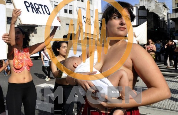 Trabajadoras de la salud se movilizaron en "topless" en la intersección de la avenida y Moreno para reivindicar el derecho a parir en el domicilio privado con la asistencia de profesionales. Cada vez más mujeres eligen esta modalidad. Mirá la galería de imágenes.