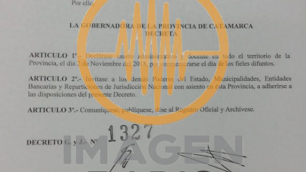 La gobernadora de la provincia, Lucía Corpacci, firmó el decreto por el cual se declara asueto el día viernes 2 de noviembre para la Administración Pública Provincial.