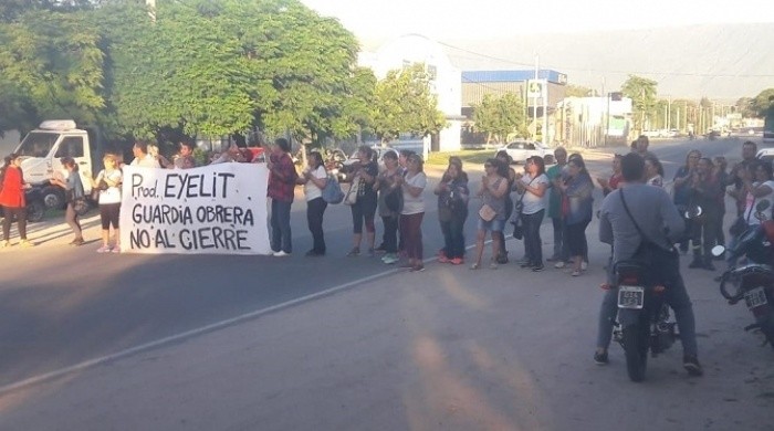 Los ex trabajadores de la fábrica Eyelit, con sus familias, continúan en la puerta de la planta 'resguardando su fuente laboral'.