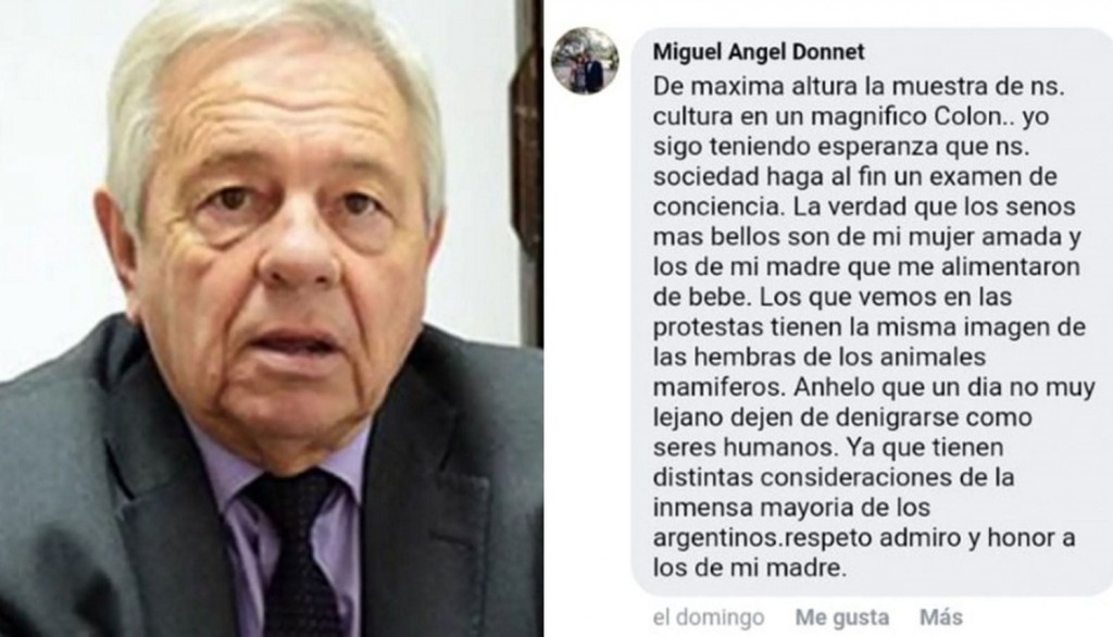 El presidente del Superior Tribunal de Justicia de Chubut, Miguel Angel Donnet, comparó a las mujeres que protestan con animales. El comentario iba dirigido a su círculo íntimo pero lo hizo en una red social. Tras el repudio que provocaron sus expresiones, tuvo que salir a pedir disculpas.