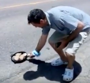 Marcos Tenagalia es un periodista de la ciudad de Tigre, en Buenos Aires, que asombrado por el terrible calor de estas tierras se le ocurrió parar en la ruta para hacer el "desafío" de cocinar algo en el asfalto.