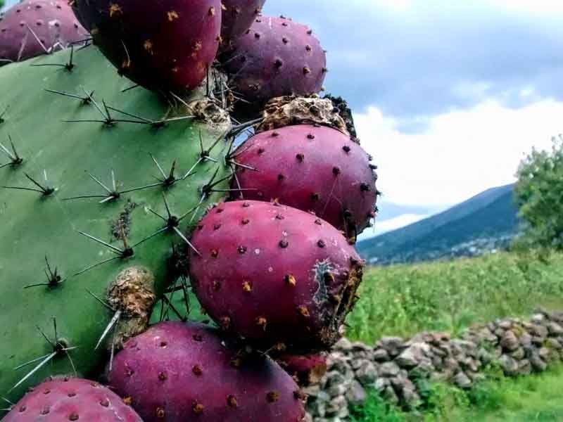 En el campo de Pampa Múyoj, se producen tres variedades de tunas, entre las cuales se encuentran las de color amarillo, anaranjado y coloradas.