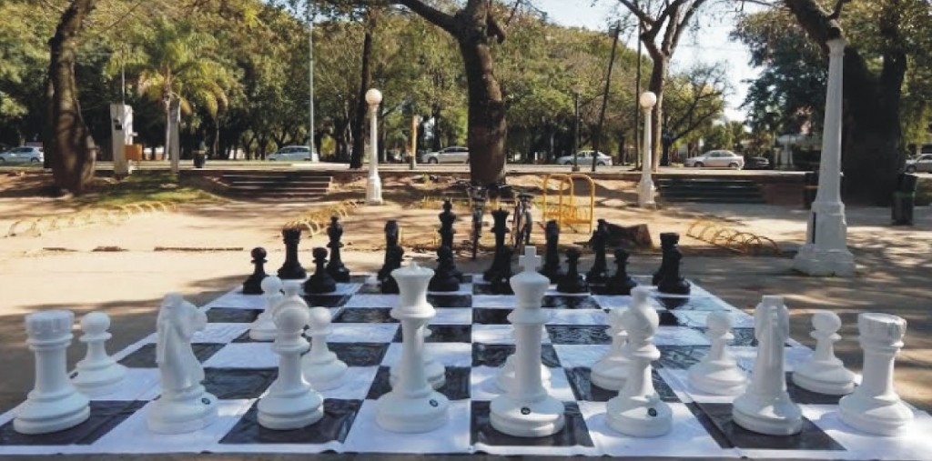 La municipalidad de Fray Mamerto Esquiú presentó un jenga y un ajedrez gigantes, juegos que requieren táctica y estrategia.