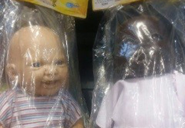 En Mendoza venden un muñeco bebé de color negro mucho más barato que el mismo de color blanco. El muñeco se exhibe en las góndolas de un supermercado de la provincia vecina.