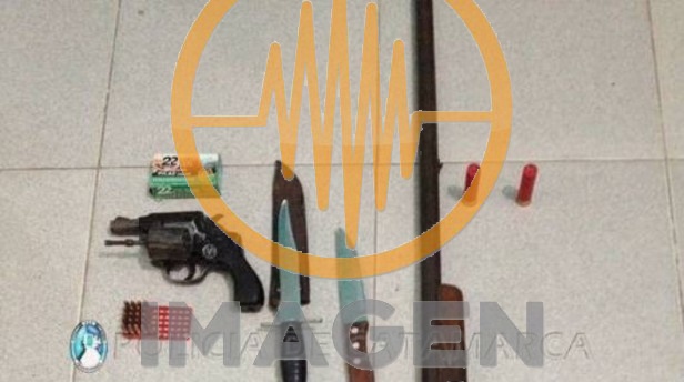 En el lugar, procedió al secuestro de dos cuchillas, una escopeta de un solo caño calibre 16 y de un revólver calibre 22 especial corto, con sus correspondientes municiones.