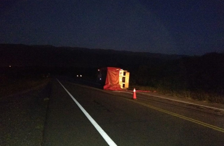 Vuelco en RNN° 38, en el ingreso a la Cuesta del Totoral. Daños materiales sin victimas.