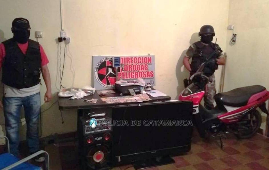 Tras irrumpir simultáneamente junto a efectivos de la División de Operaciones Especiales Kuntur y de la Comisaría Departamental Recreo, en viviendas de los Barrios Obrero y San Martin, de esa Ciudad del Departamento La Paz, los Policías procedieron al secuestro de 150 Gr. de cocaína de Máxima Pureza, conocida como “Alita de Mosca”, trozos compactados, cigarrillos de armado casero y dosis listas para comercializar de marihuana y elementos para fraccionar la sustancia estupefaciente. Además, durante la requisa procedieron también a secuestar tres teléfonos celulares de distintas marcas y modelos, dos balanzas digitales, una de ellas apta para pesar gramos, una motocicleta Gilera 110 cc., un TV Philips 43 pulgadas, un reproductor de música marca Kazz, y la suma de veinticinco mil pesos en efectivo, discriminados en billetes de distinta denominación.