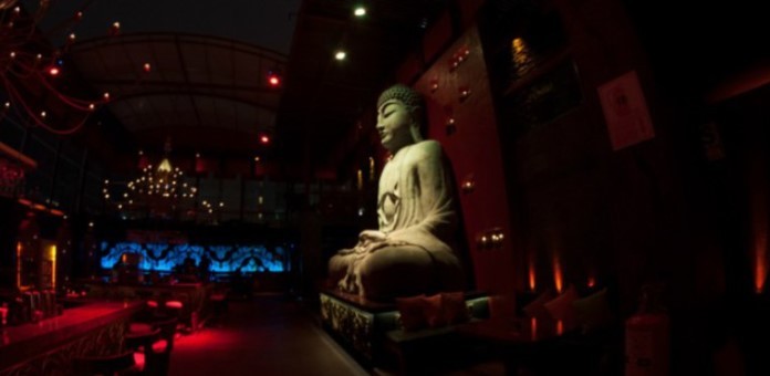 ¡Insólito! Un borracho discutió con una estatua de Buda y terminó besándola