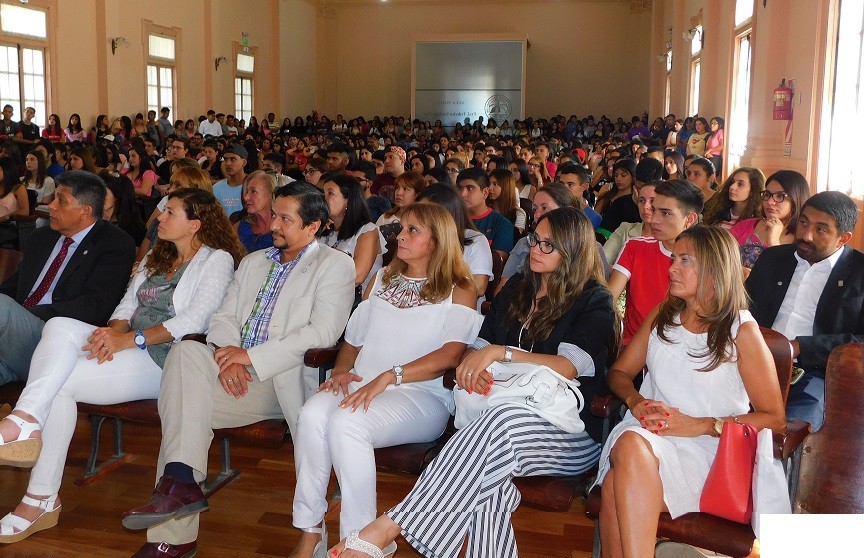“Tener un marco de 800 jóvenes ansiosos por emprender una carrera es un hecho muy auspicioso para la facultad, la universidad y  para ellos que tomaron esta decisión tan importante en su vida. Para nosotros es un desafío poder recibirlos, contenerlos guiarlos, para que ellos lleguen a obtener su diploma universitario”, expresó la Decana. Más adelante, explicó que la Facultad realiza todos los años un curso introductorio que se lo dicta hace tiempo denominado Modulo de Articulación Común (MAC) “En su estructura se contemplan cuatro aspectos fundamentales para los aspirantes a ingresar a la universidad:  uno es la dimensión disciplinar donde los estudiantes reciben información general acerca de la carrera seleccionada, la dimensión que contempla un abordaje sobre las tics, la dimensión “vida universitaria” donde los estudiantes  se interiorizan sobre el origen de la Facultad y de la UNCA, los principios que sustentan la universidad pública argentina, y los servicios sociales, y una dimensión de comprensión de texto, en donde al alumno se le brindan herramientas para los procesos de estudios”, detalló.