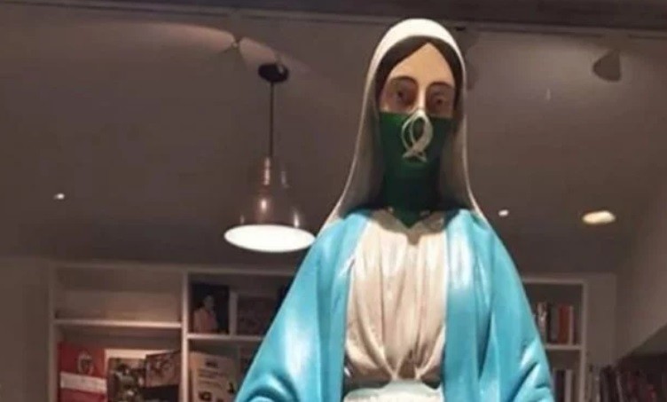 Una imagen de la Virgen de la medalla milagrosa con un pañuelo verde, símbolo de las personas que están a favor del aborto, generó una gran controversia.