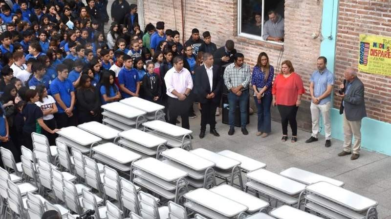 El intendente de valle viejo Gustavo Roque Jalile,acompañado de su equipo de funcionarios, realizo la entrega formal de pupitres y material didácticos para la escuela municipal Nº1 María Emilia Azar.