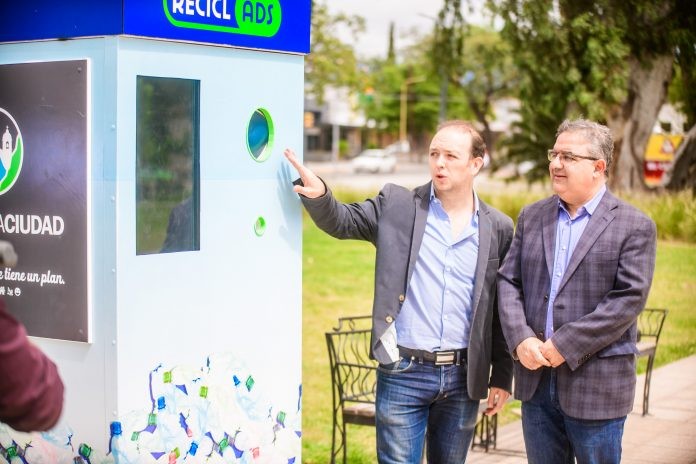 La firma emprendedora local “ReciclAds” lanzó su primera máquina de descuentos en comercios a cambio de residuos reciclables.