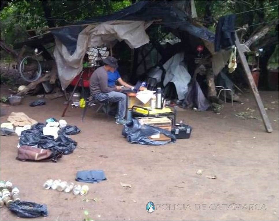 Luego, al dirigirse a una finca lindante, propiedad de la familia Palacios, ubicada en el paraje La Aguada, la Policía incautó plantas de marihuana de distintos tamaños, que estaban siendo cultivadas ocultas detrás de una densa vegetación. También, en el lugar hallaron bolsas de nylon y frascos de vidrio conteniendo diversas sustancias que fueron sometidas a la prueba de campo.