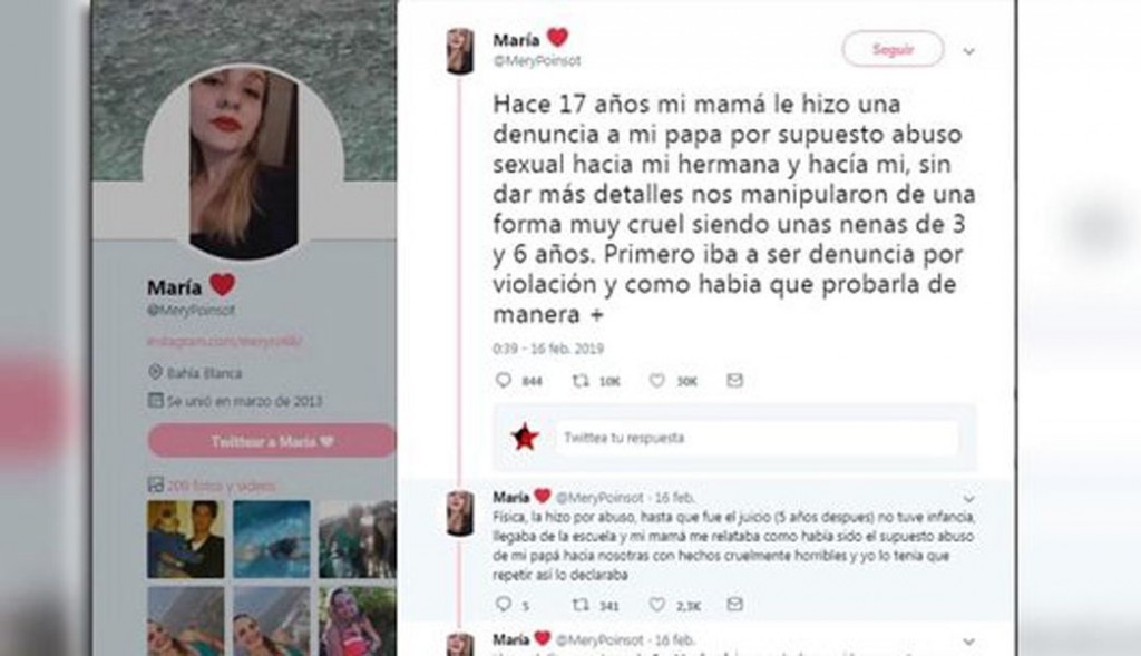 Mariana recuerda: "Yo tenía recuerdos de mi papá, yo siempre quería verlo, lo extrañaba un montón. Ya de más grande empecé a investigar, hice terapia y pude leer la carta por la que condenaron a mi papá y me di cuenta de que esa carta no está escrita por una nena de doce años. Al leer el veredicto me di cuenta de que había un montón de incoherencias. El psicólogo decía que mi hermana María Paz no había sido abusada y que sólo repetía lo que yo decía o lo que mi mamá decía y nadie se daba cuenta de que no había sido abusada. A mí padre le notificaron cuando estuvo con prisión preventiva por 20 días en 2002 que le habían dado la tenencia de mi hermano Matías: ¿cómo la justicia puede darle la custodia de un menor a un supuesto abusador?"