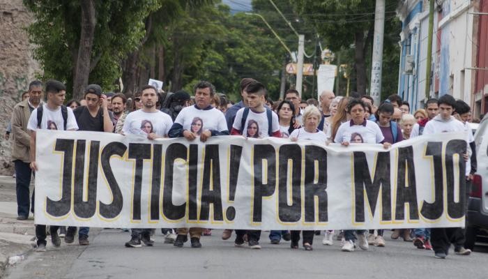 Con un cartel que rezaba la frase “Justicia por Majo”, el hermano acompañado de otros familiares y amigos de la chica partieron alrededor de las 10.00 de la mañana de la esquina de Ayacucho y Avenida Belgrano y caminaron en silencio por calle Ayacucho con sentido sur y se dirigieron a la Fiscalía. Allí, pegaron unos carteles y pidieron a la fiscal que tiene la investigación, la inmediata detención de Bruno Saragusti, ex pareja de la joven .