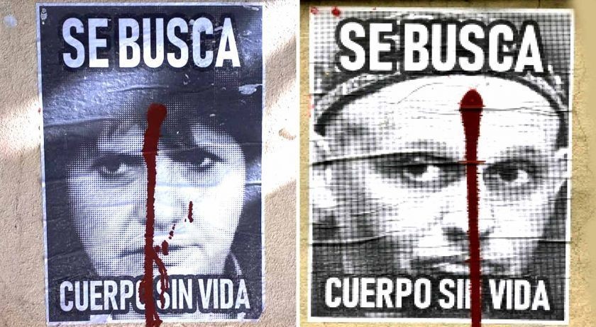 Se busca, cuerpo sin vida”. Los carteles intimidatorios que muestran los rostros de la Ministra de Seguridad, Patricia Bullrich, y al Secretario de Ambiente y Desarrollo Sustentable, Sergio Bergman, con una mancha de sangre que baja desde su frente al mentón, aparecieron esta en la Facultad de Humanidades y Ciencias Sociales de la Universidad de Rosario, luego de la marcha por el 24 de marzo.