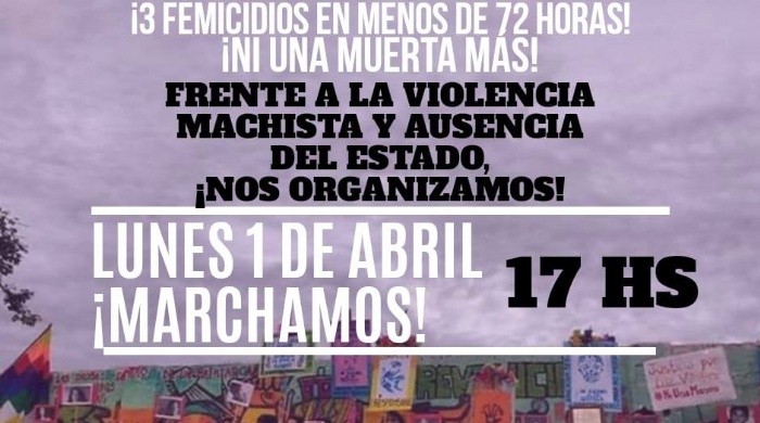 Será el lunes a las 17 frente a Casa de Gobierno, ante las tres mujeres asesinadas en la provincia en menos de 72 horas.