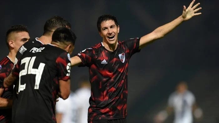 Hasta que a los 26 llegó la apertura del marcador, cuando desde un pelotazo de Armani, Pratto peinó para Borré, quien se la devolvió de taco. El Oso tuvo que retroceder unos metros y vio como Nacho Fernández picó en diagonal para recibir la gran asistencia del delantero y poner el 1-0.